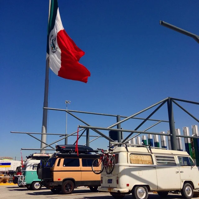 Upon reaching the border crossing we followed Rob, the caravan leader the wrong way down a one way, then Ben proceeded to scrape his tire on a metal pole creating a screeching sound, announcing to the Mexican government that the VW shit show has arrived.