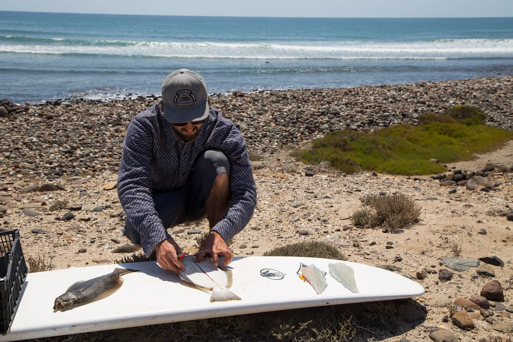 The swell was relatively nonexistent in Abreojos but Dillon found ways to keep busy! He was able to jump on a boat for a day with a local captain, heading about 15 miles off shore in search of Yellow Tail but the temps had dropped and the yellow tail had fled the area. Fortunately this big ol grouper was enough to fill the fridge! It is customary in the fishing villages to give a majority of your catch to the captain for he and his family. With this grouper there was plenty to go around.