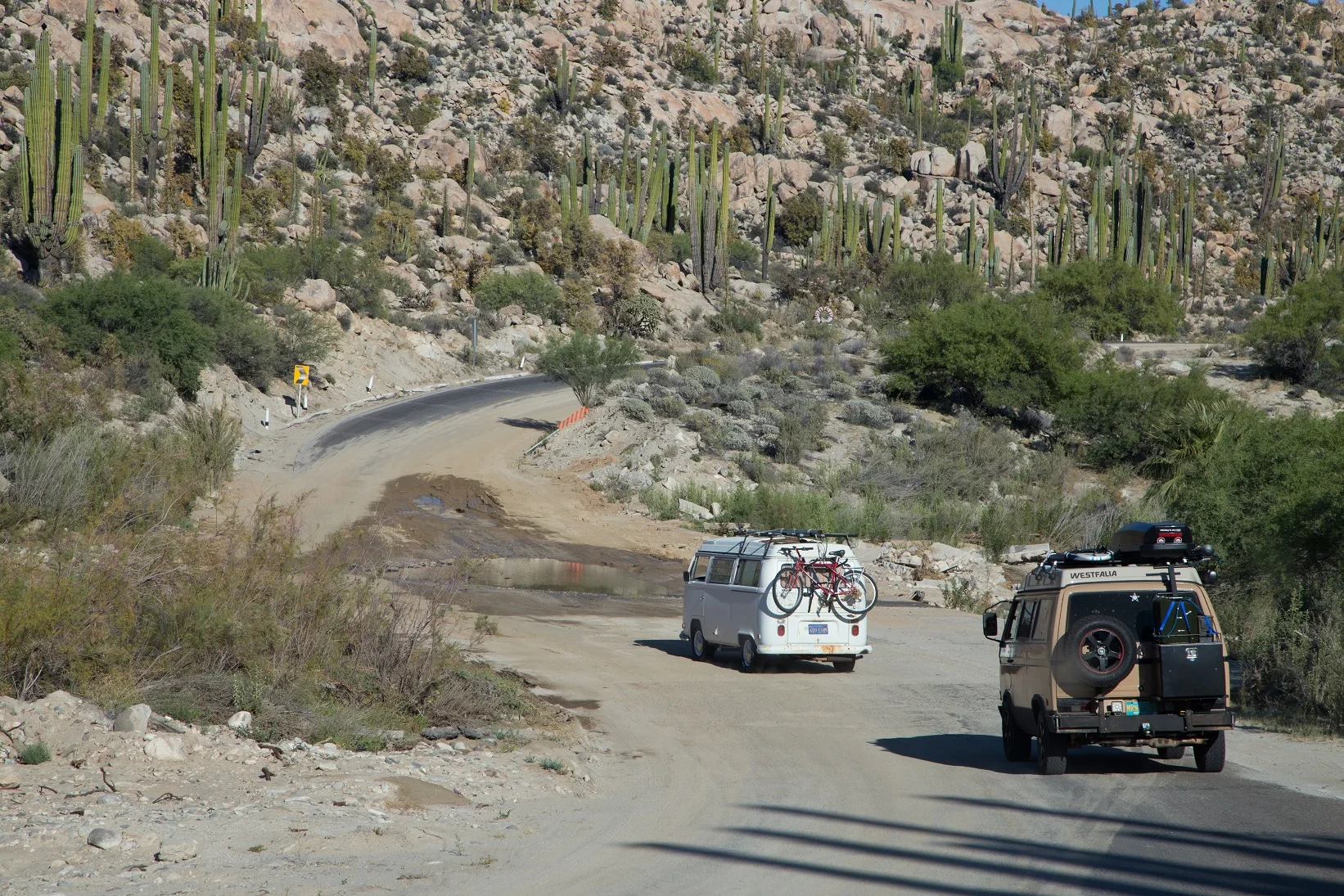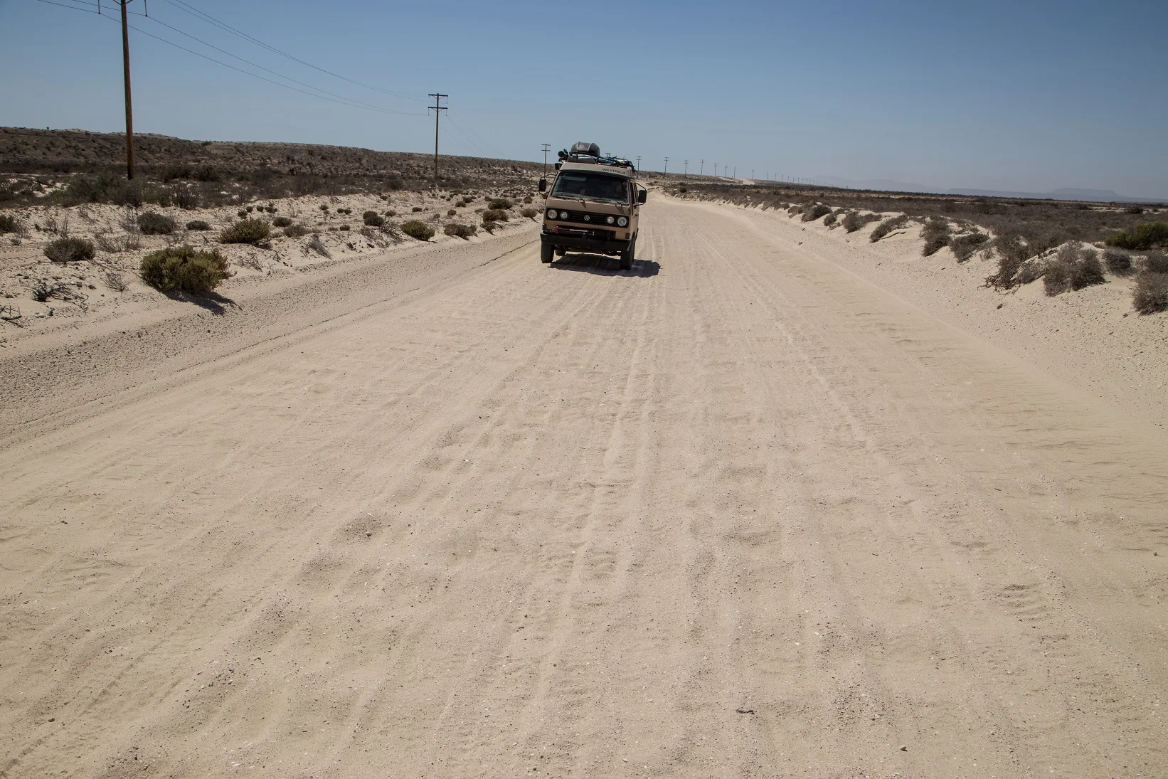 After 5 days we packed up camp to head south towards Abreojos. The westy caravan moved out for the hour long dirt road to head farther south.