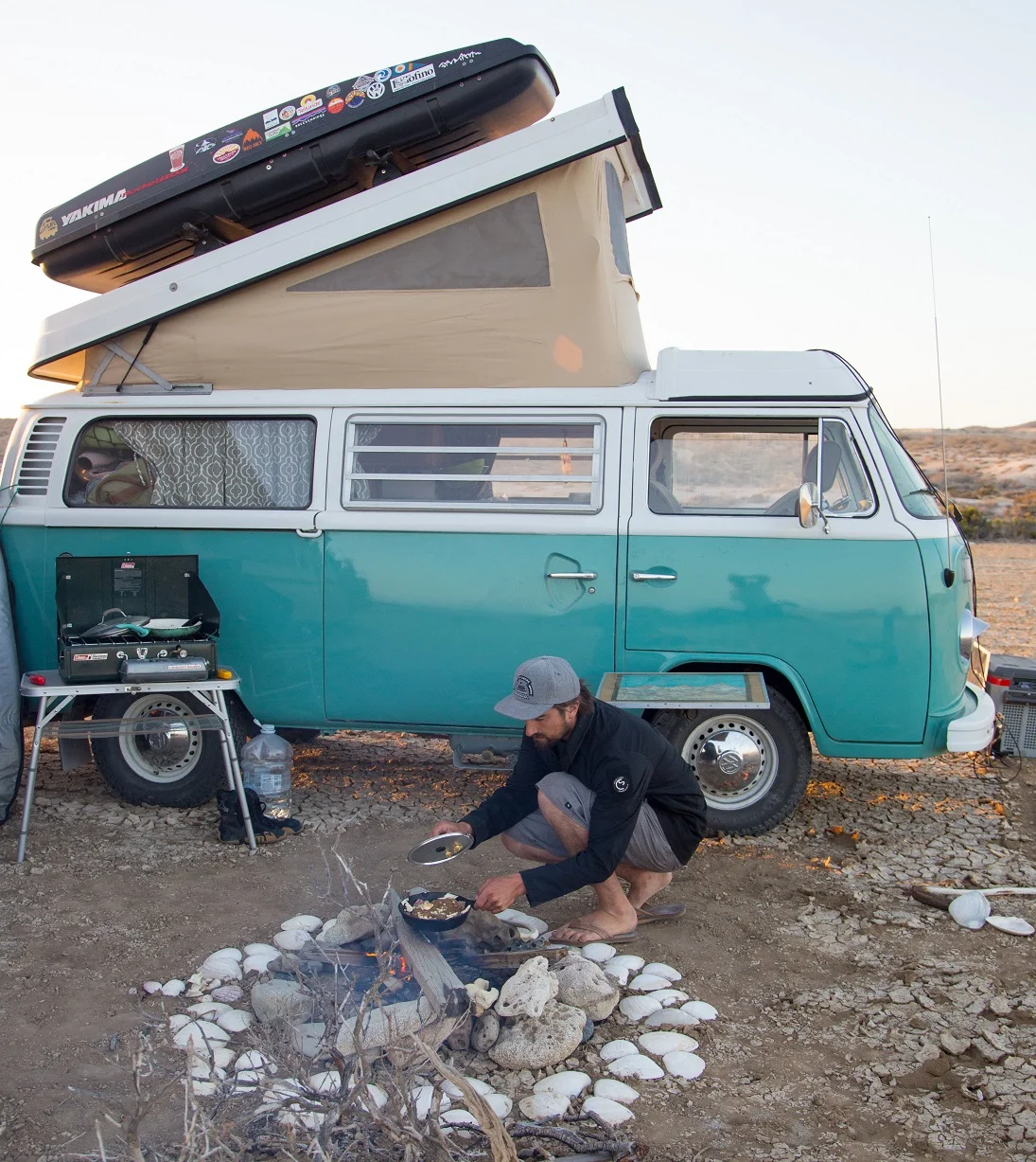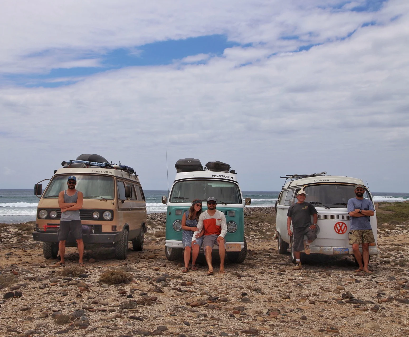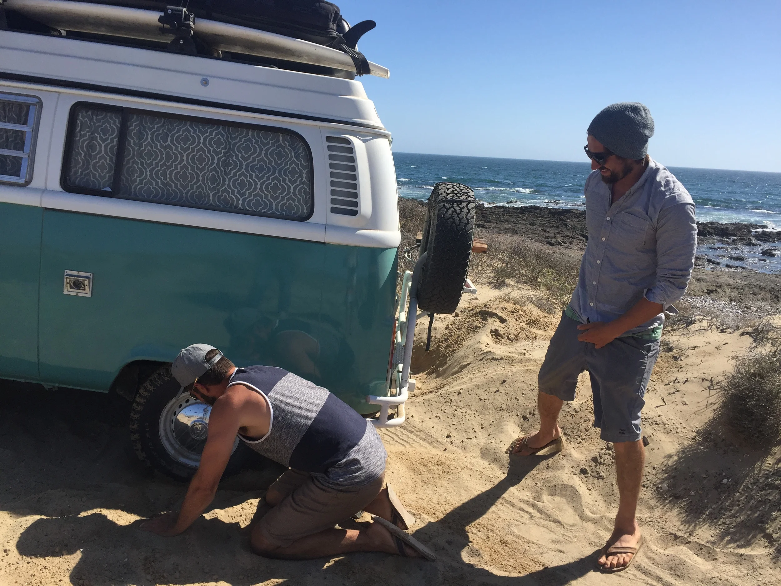 Of course it was easier said than done to get three volkswagons from point A to point B. We were cruising in the back of the caravan when Ben’s pop top caught a gust of wind, making it look like the entire top of his van was about to rip off. After the challenging task to waving down the other two vehicles ahead of us, we all pulled over to realize he simply didn’t completely lock down the pop top. Back on the road and we were cruising south for the next surf spot. Three minutes later we noticed liquid spraying out of the back of Rob’s bus. Again we attempted to wave the crew down from the back of the caravan to find out that it was gasoline spraying out of gas cap (mexican gas station attendants fill your tank for you, and his forgot to tighten the cap all the way) which would have easily led to the back end of his bus catching on fire, a common cause of death for VW’s.